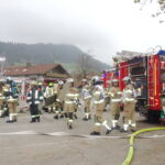 „Brand im Gastronomiebereich des ehemaligen Hallenbads, der sich auch auf die Kellerräume ausgebreitet hat, alle Innenräume stark verraucht, mehrere Personen vermisst.“ So lautete das Szenario bei einer Gemeinschaftsübung der Freiwilligen Feuerwehren Reit im Winkl, Oberwössen und Kössen in Reit im Winkl.