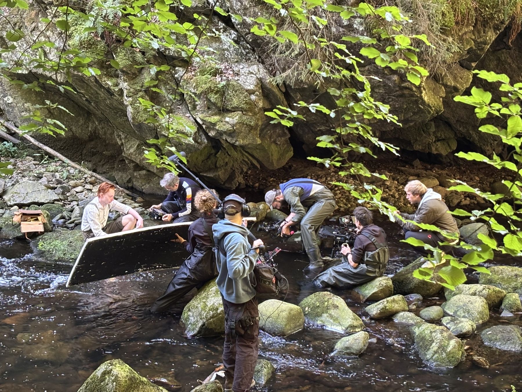 Buchberger Leite – voller Einsatz für das Drehteam und Darsteller Xavi Wimbauer in der kalten Wolfsteiner Ohe.