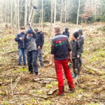 Insgesamt 200 Edelkastanien, Heimbuchen und Roteichen wurden unter der Anleitung von Anton Stein und Sebastian Jell auf einer freigewordenen Fläche im Kirchwald nachgepflanzt. Für viele von ihnen, wie für Simon Fischer aus Bad Endorf und Lukas Feichtner aus Prien-Siegharting war der Tag bei günstigstem Frühjahrswetter ein wohltuendes Erlebnis, beide sagten: „Von Daheim waren und sind wir es gewohnt, am eigenen Holz Freude und Interesse zu haben“. Gemeinsam legten sie bei dem Setzen eines jungen Baumes gekonnt Hand an. Eine weitere Aufgabe im Rahmen des Aktionstages galt dem Anbringen eines Verbiß-Schutzes bei Jungpflanzen. Für alle gab es für den gut fünfstündigen Einsatz eine von Pfarrer Philipp Werner gespendete Mittagsbrotzeit.