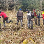 Fotos: Hötzelsperger – Eindrücke vom Naturprojekt-Tag der Firmlinge im Priener Kirchwald – 1. Anton Stein (li.) mit den Firmlingen Simon Fischer und Lukas Feichtner – 2. Weitere Bilder