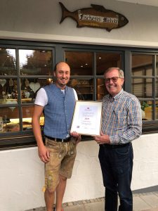 links im Bild Dominik Minholz, rechts im Bild Manfred Mödinger, Mitglied des Leitungsteams Slow Food Chiemgau-Rosenheimer Land und „Projektleiter Genussführer“ in der Regionalgruppe.