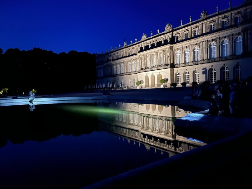 Bericht und Foto: Markt Prien a. Chiemsee – Bei der abendlichen Führung auf Herrenchiemsee kann man beobachten, wie die Fledermäuse im schnellen und wendigen Tiefflug knapp über der ruhigen Wasseroberfläche des Fortuna-Brunnens jagen.