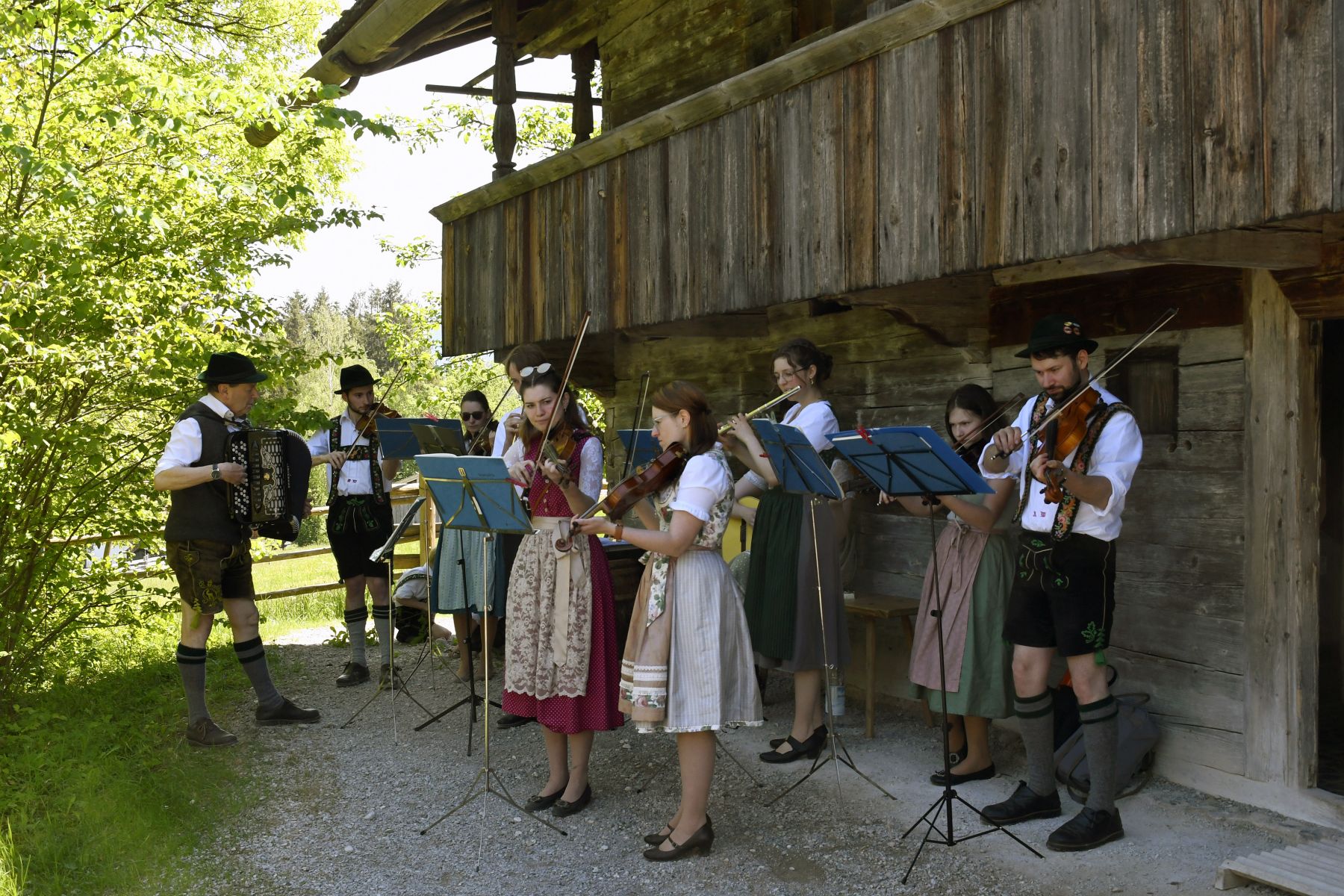 Im vergangenen Jahr spielte die Familienmusik Wintz mit Freunden an der Glentleiten beim Tag der Volksmusik auf. Sie ist auch heuer wieder mit dabei! Bildquelle: Bezirk Oberbayern, Zentrum für Volksmusik, Literatur und Popularmusik