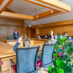 Fotos: Tourist-Information Frasdorf – Die Ferien- und Nachwuchsreporter von Frasdorf im Sitzungssaal des Frasdorfer Rathauses – u.a. in der Gruppe mit Sandra Grünert und Anton Hötzelsperger