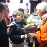 2916: Claudia Roth freut sich über ihre Blumen von den jungen Menschen.