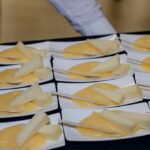 Im Anschluss an die Vorstellung hatten die Teilnehmer Gelegenheit, beim Light Lunch einen Eindruck von den kulinarischen Besonderheiten Friauls zu gewinnen. Die präsentierten Produkte stehen beispielhaft für die kulinarische Identität der Region: Der luftgetrocknete San Daniele-Schinken, der in der gleichnamigen Gemeinde hergestellt wird. Der Montasio-Käse, ein halbfester Käse mit langer Reifung, welcher ausschließlich aus Kuhmilch von Almkühen hergestellt wird. Ein fester Bestandteil der friulanischen Küche ist Polenta – aus Maismehl zubereitet und in vielfältiger Weise verwendet. Beispielsweise als Beilage des Frico, ein traditionelles Gericht aus Käse und Kartoffeln, außen knusprig und innen zart. Ergänzt wird das Menü durch eine Auswahl an regionalen Weiß- und Rotweinen, die die klimatische und geologische Vielfalt Friauls widerspiegeln.