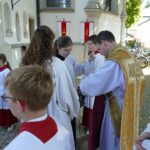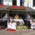 Die Altarstationen waren am Marktplatz, im Ortsteil Gries und vor dem Rathaus. Den Gottesdienst zelebrierte Pfarrer Philipp Werner, die Musik kam vom Kirchenchor und von der Blaskapelle.
