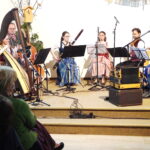 -S’Quartettl mit Konzertgitarristin Karin Scholz (von rechts), Erich Kogler, Kontrabass, Helmut Scholz vom bayerischen Rundfunk, Zither und (vorne) Hermann Huber, Gitarre (dahinter die Ganghofer Musikanten)