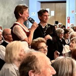 Rein instrumental spielten auch die Ganghofer Musikanten schneidig auf beim „Zwerksde-Boarischen“, dem Edeltrio Landler oder einer Polka aus Hermann Hubers Feder. Mit Flöte, Oboe und Fagott, sowie den Streichinstrumenten Violine und Kontrabass bildeten sie das Pendant zu den Blechbläsern der Alpenlandler Musikanten. Ein augenzwinkernder Höhepunkt war schließlich das „Musi-Radl“ rund um die Liebe – inklusive eines humorvollen Gedichts “ans Everl”, das mit einer überraschenden Pointe für Heiterkeit sorgte.