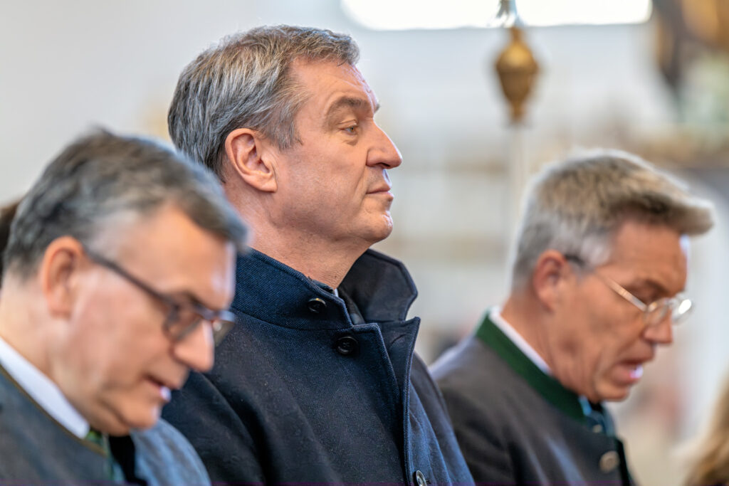 Stiller Moment während des Festgottesdienstes: Ministerpräsident Dr. Markus Söder in der ersten Reihe der Basilika Tuntenhausen.