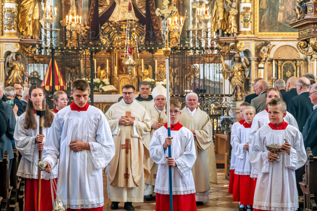 Feierlicher Auszug nach dem Festgottesdienst in der Basilika Tuntenhausen: Ministranten, Geistliche und Teilnehmer prägten das eindrucksvolle Bild der Frühjahrswallfahrt des Katholischen Männervereins.