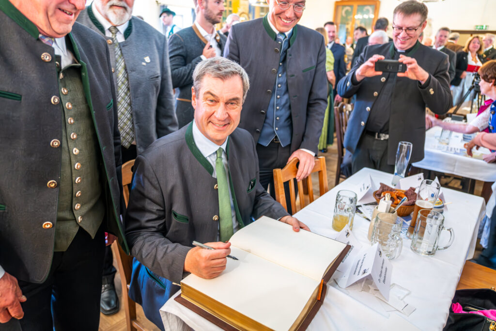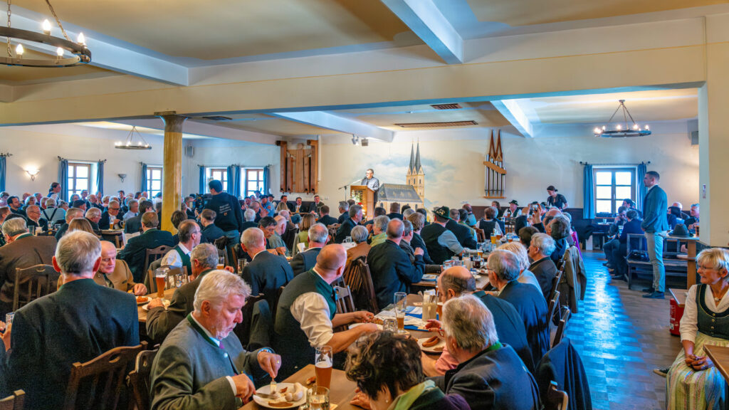 Im Anschluss stand die Zusammenkunft im Zeichen von Glaube, Gemeinschaft, Heimat und bayerischer Identität. Festredner war der Bayerische Ministerpräsident Dr. Markus Söder. Die einleitenden Worte sprach der Vereinsvorsitzende Dr. Florian Herrmann, MdL, Leiter der Bayerischen Staatskanzlei und Staatsminister für Bundesangelegenheiten und Medien. Den Abschluss übernahm der stellvertretende Vorsitzende, Landrat Otto Lederer.