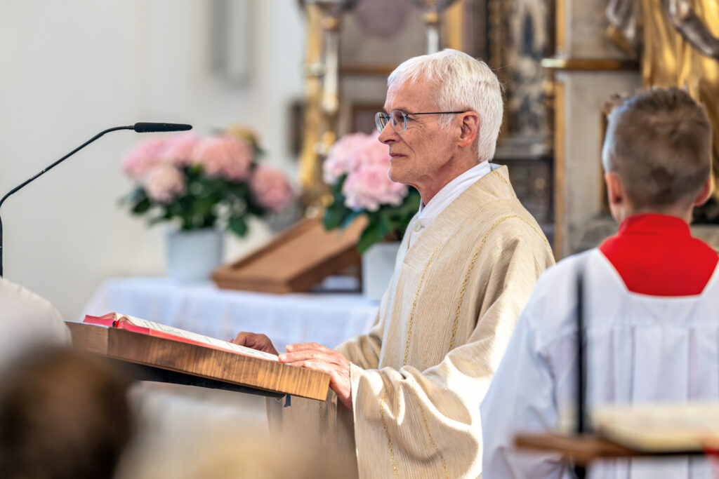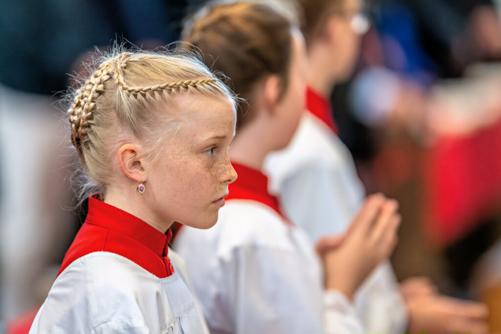 Stiller Moment beim Festgottesdienst in der Basilika Tuntenhausen: Eine Ministrantin verfolgt konzentriert die Liturgie der Frühjahrswallfahrt des Katholischen Männervereins.
