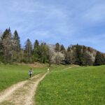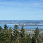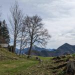 Wir starten in Adersberg, wo ein beliebter Höhenrundweg beginnt. Auf dem Parkplatz steht nur ein einziges Auto – trotz der Osterferien ist überraschend wenig los. Vom Berggasthof Adersberg geht es zunächst steil, später moderater bergauf. Unterwegs begegnen wir lediglich einer Wanderin, die gerade die Blüten eines Kirschbaums fotografiert. Der Weg bietet schöne Ausblicke, bald öffnet sich der Blick auf den Chiemsee.