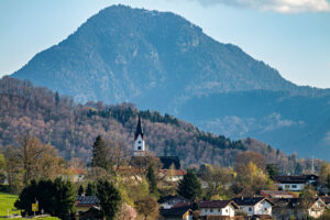 Die Filialkirche Heilige Dreifaltigkeit in Altenbeuern fügt sich stimmungsvoll in die frühlingshafte Landschaft ein.