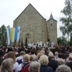 Der Sonntag, der Höhepunkt der Festtage, begann früh mit dem Weckruf und dem Böllerschießen in Kirchberg und den umliegenden Dörfern. Der Festgottesdienst mit Bändersegnung war ein besonderes Erlebnis. Extra zu diesem Anlass haben die Trachtler ihre 1979 geweihte Fahne grundlegend restaurieren lassen. Die Knappschaftskapelle Bodenmais umrahmte die Waldlermesse im Volksgesang. Festmutter, Schirmherr, Ehrenschirmherr, Patenverein aus Spiegelau und Festausschuss stifteten Fahnenbänder als bleibende Zeichen der Erinnerung. Die Bänderträgerinnen waren Festjungfrauen aus der aktiven Trachtenjugend: Theresa König, Eva Schraml, Marina Schreiner, Isabell Zaglauer und Anna Trauner.