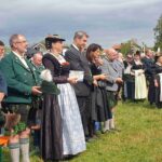 Nach dem Empfang der Vereine am Festzelt ging der Kirchenzug zum Kirchplatz, wo auf einer großen Wiese mit herrlichem Bergblick ein festlich geschmückter Altar aufgebaut war. Der Anblick der tausenden Menschen, Kinder, Jugendliche, Erwachsene, Senioren, alle in ihren schönen, von alters her überlieferten Trachten, war erhaben. Dazu passte die Feststellung von Gauvorstand Michael Hauser in seinem Grußwort „a friedliche und freudige Demonstration der Trachtensach“. „Trachtler sein ist in erster Linie eine Herzensangelegenheit“, fuhr Hauser fort. Er erinnerte daran, dass 2023 ganz im Zeichen von 140 Jahre Trachtenbewegung in Bayern steht. Die Trachtenvereine stehen für Tradition, für schöne Feste, Freude, Mut, Disziplin, Zusammenhalt und eine hervorragende Jugendarbeit, so Hauser. Dem schloß sich Bernhard Kern, Landrat des Berchtesgadener Landes an. Er nannte das Gaufest einen „ Beweis für Brauchtum, Tradition, Heimatverbundenheit und Zusammenhalt, in der Tracht und der Musik!“ Es sei ihm eine große Freude, dass es diesmal in seinem Landkreis stattfindet und hob die Leistungen des Festleiters Hans Hogger besonders hervor.