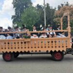 Nach dem Gottesdienst folgte der Festzug, wegen der großen Anzahl an Teilnehmern auf zwei Züge aufgeteilt, die in unterschiedlichen Richtungen durch die blau-weiß geschmückten Strassen des Ortes marschierten ehe sie an der Ehrentribühne vorbei zweizügig ins Festzelt zogen. Tausende Zuschauer säumten die Straßen, um das farbenprächtige Bild zu bewundern, das die von jeweils zwei Vorreitern angeführten Züge mit den drei Ehrenkutschen, den vierzehn Gespannen, 46 Musikkapellen und natürlich den vielen, vielen Trachtlern der 113 teilnehmenden Vereine abgaben.