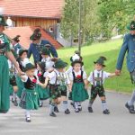 Gemeinsam zogen alle zurück ins Zelt, wo zur Frühschoppenzeit die Jugendgruppen der umliegenden Vereine und die Gaujugendgruppe ihre Auftritte zeigten. Am Nachmittag beim großen Festumzug zogen durch das sauber rausgeputzte Hopferau die 3.818 Zugteilnehmer in 50 Zugnummern, in Gebirgs- und historischen Trachten, mit dabei auch Trachtler aus dem Lechtal und Laimbachtal, die Ortsvereine und zwischendurch immer wieder ein schöner Festwagen. Im Zelt und auf der Freibühne folgten Ansprachen, Ehrentänze und die Vergabe der Meist- und Weitpreise. Schirmherr Dr. Theo Waigel war sichtlich froh über das gute Wetter und freute sich auf ein Wiedersehen. Den Weitpreis erhielten D’Windachtaler Hofstetten, den Meistpreis außer Gau D’Schwalbenstoaner Hohenfurch und die stärkste Gruppe im Gau mit 214 Zugteilnehmern waren D’Schwanstoaner Schwangau. Die Musikkapelle Schwangau musizierte anschließend zur Unterhaltung und zum Festausklang d’Blechbätscher. „Kommet und feiret mit eis, mir feiret mit uib!“ Schea, dass so viele Gaufestbesucher und Gäste zum Feiern kommen sind.
