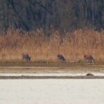 Kleinfische zwischen den Lücken im ersten Eis dieses Winters. Ein ungewöhnliches Stelzenpärchen jagte Insekten am Ufersaum des Sees. Die Gebirgsstelze erbeutete wiederholt im Sprung an Stängeln sitzende Fliegen. Rothirschkühe, begleitet von einem Kapitalen Hirsch, ästen entspannt das frische Grün am Seeufer in der Bucht. Ein junger Habicht sorgte für Aufregung und einer kleinen Schwarm gründelnder Stockenten flüchtete vor dem, allerdings erfolglosen Jäger. Auch mich trieb Kälte, welche langsam durch die Kleidung drang, zum Aufbruch.