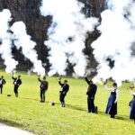 Fotos: 1. Gemeinsamer Ehrensalut der Priener und Rosenheimer Böllerabordnung beim Schützenhaus in Prien.