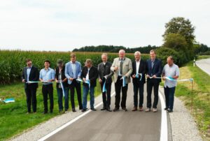 v.l.n.r.: Daniel Drachenberg, Gebietsabteilungsleiter, Staatliches Bauamt Rosenheim Timo Pfister, Abteilungsleiter, Staatliches Bauamt Freising Andreas Kellner, SAK Ingenieurgesellschaft mbH Maximilian Böltl, MdL Klaus Korneder, 1. Bürgermeister Gemeinde Grasbrunn Andreas Lutz 1. Bürgermeister Gemeinde Oberpframmern Christoph Göbel, Landrat Landkreis München Walter Brilmayer, Stv. Landrat Landkreis Ebersberg Matthias Kreuz, Stv. Fachbereichsleiter Straßenbau, Staatliches Bauamt Rosenheim Stephan Roessle, Swietelsky Baugesellschaft m.b.H.