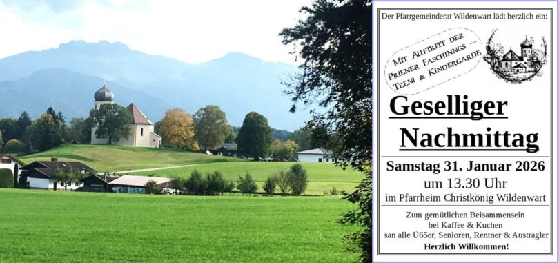 Der Pfarrgemeinderat von Wildenwart lädt für Samstag, 31. Januar zu einem geselligen Nachmittag in das Pfarrheim “Christkönig” ein.