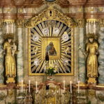 An drei Samstagen fanden auch heuer im Oktober die „Goldenen Samstage“ in der Wallfahrtskirche „Maria Heimsuchung“ in der Einsiedelei Kirchwald im Pfarrverband Neubeuern-Nussdorf statt. Nach langer Tradition kommen zu diesen Feierlichkeiten nicht nur Pilger aus den nahen Gemeinden Nussdorf und Samerberg, sondern von weither, um der Gottesmutter Maria in der über 300 Jahre alten und idyllisch gelegenen Kirche die Ehre zu erweisen und ihr die ganz persönlichen Anliegen vorzutragen. Der Kirchenbau entstand nach einer Quellen-Entdeckung, der man heilende Kräfte zuordnete. Die Kirche als auch nebenan die Klause erlitten im letzten Jahr einen Schaden am Holzschindeldach. Um das Eindringen von Wasser in den Dachstuhl aufzuhalten und in das kunsthistorisch wertvolle Kirchenschiff zu vermeiden, haben aufwendige Renovierungs- und Gerüstarbeiten sowie eine Spendenaktion (Pfarrkirchenstiftung St. Vitus – DE98750903000002120623 GENODEF1M05) begonnen. Nach dem Gottesdienst bestand noch Gelegenheit zu einer kleinen Kaffee- und Brotzeit-Einkehr. Die Bewirtung übernahm in der kleinen Hütte mit zusätzlichen Außen-Sitzplätzen auch diesmal nach guter Tradition die Schneiderwirtsfamilie von Nussdorf.