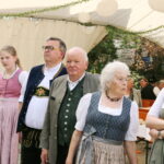 Text und Bilder: Thomas Schwitteck – Das Foto zeigt Dirigenten Bernd Eutermoser beim Gratulieren, den Jubilar mit Ehefrau Gertraud und Familie, Georg Spatzier bei der Geschenkübergabe, mit herzlichen Worten des Dankes für die langjährige Treue zur Musik.