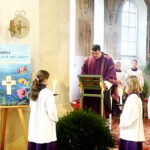 Fotos: Hötzelsperger – Eindrücke vom Abschiedsgottesdienst mit Pfarrer Gottfried Grengel in Greimharting – u.a. v.l.n.r.: Konrad Möderl und Elisabeth Kotter vom Pfarrgemeinderat mit Ministranten und Pfarrer Gottfried Grengel.