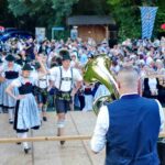 Zum Dorffest-Erfolg trugen in erster Linie die Greimhartinger Trachtler selbst bei. Sie sorgten für reichlich Bestuhlung, zusammen mit Metzger Grosse von Pinswang und mit Flötzingerbräu Rosenheim für kulinarische Genüsse und die Frauen des Vereins erfreuten mit einer eigenen Kuchen- und Kaffeebar ehe zu vorgerückter Stunde die Aktiven zu einer Sommerabendbar einluden. Zentraler Mittelpunkt des Unterhaltungsprogrammes war die eigens aufgebaute Bühne. Dort spielte die Kapelle „A Hand Voi“ (mit Vereinsmitglied Anita Mayer und ihren Musikanten) unter anderem mit Oberkrainer-Weisen auf und auf der Bühne zeigten die Dirndl und Buam der Kinder-, Jugend- und Aktivengruppe ihre in vielen Proben einstudierten Tänze und Schuhplattler. Etwas lautstark wurde es dann beim Auftritt der Greimhartinger Goaßlschnalzer, die sich auf den Tischen zwischen den Besucherreihen aufstellten und ebenfalls zeigten, dass sie sich gut auf den Trachtensommer vorbereitet haben. Für Rimstings Bürgermeister Andreas Fenzl war das Dorffest einmal mehr einen Besuch wert, in seiner Einschätzung sagte er: „Nach dem richtig schönen Rimstinger Jubiläums-Trachtenfest hat sich auch in Greimharting wieder gezeigt, dass Zusammenhalt und Brauchtumsfreude zu einem Fest der Freude für Einheimische und Sommergäste gleichermaßen führen können“.