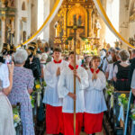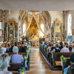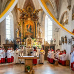 Törwang – Ein Tag voller Glanz, Tradition und Herzlichkeit: Am vergangenen Freitag feierte die Pfarrei Törwang ein ganz besonderes Hochfest an Maria Himmelfahrt. Zwei bedeutende Jubiläen verliehen dem Fest eine feierliche Tiefe – 750 Jahre Grainbacher Kirche und 100 Jahre Törwanger Pfarrkirche. Schon beim Betreten der festlich geschmückten Kirche Mariä Himmelfahrt spürte man die besondere Atmosphäre: Jeder Platz war besetzt, die Empore und Eingänge waren dicht gefüllt mit Gläubigen in bunter Tracht, die zusammenkamen, um diesen besonderen Tag zu erleben.