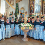 Frauen des Trachtenvereins Hochries-Samerberg in festlicher Tracht beim heutigen Patrozinium in der Pfarrkirche Mariä Himmelfahrt in Törwang – feierlich versammelt um die mit Blumen geschmückte Statue der Gottesmutter.
