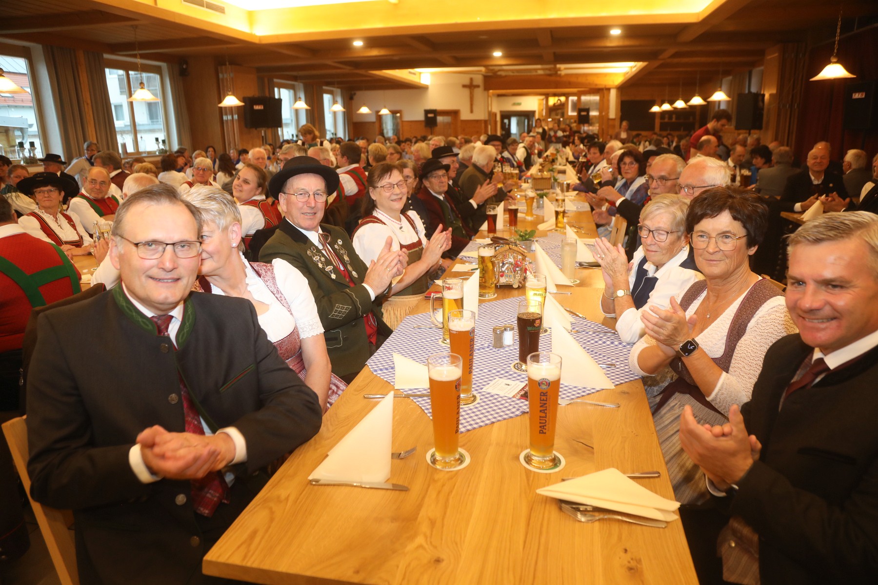 Insgesamt 24 Trachtenvereine und Ortsvereine waren der Einladung zum 75-jährigen Gründungsfest in den Festsaal gefolgt