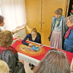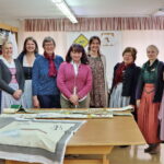 Auf dem Programm des jährlichen Trachtenwartinnen-Ausflugs, zu dem Leni Sappl und Tanja Leitner vom Sachgebiet „Trachtenpflege und Trachtenforschung“ geladen hatten, standen heuer zwei Betriebe, die jeweils noch eine selten gewordene Handwerkskunst beherrschen. Zunächst steuerten die Trachtlerinnen des Loisachgaus die Fahnenstickerei Jaeschke & Zwislsperger in Engelsberg im nördlichen Landkreis Traunstein an. Dort führte Firmenchefin Carmen Zwislsperger durch die 1978 von ihrer Mutter Annemarie Jaeschke gegründete Kunst- und Fahnenstickerei und zeigte den Teilnehmerinnen Schritt für Schritt wie eine neue Fahne entsteht, aber auch wie eine alte Fahne oder sakrale Gewänder restauriert oder konserviert werden können. Bei dem Rundgang durch den traditionellen Handwerksbetrieb, der auch „Textilgestalter im Handwerk im Bereich Stickerei“ ausbildet, konnte man den angestellten Stickerinnen jeweils über die Schulter schauen und Fragen zu den verwendeten Materialien und Sticktechniken stellen. Besonders beeindruckt zeigten sich die Trachtlerinnen sowohl von der handgeführten Maschinenstickerei, bei dem mit einer großen Portion Gefühl die Stichbreite mit einem Hebel während des Nähens eingestellt wird, als auch von der Nadelmalerei, die viel Geduld und Fingerspitzengefühl für die feinen Farbschattierungen von den Stickerinnen erfordert. Bei der interessanten Führung wurde deutlich, dass in den rund 365 Arbeitsstunden für eine neue Fahne auch jede Menge Herzblut steckt. Die Firmenchefin begleitet den Verein von Anfang an persönlich und macht u.a. einen Vorortbesuch für die Motivsuche und stimmt die Motivgestaltung eng mit dem Auftraggeber ab. Schließlich soll der Verein – so Carmen Zwislsperger – am Ende einen „Repräsentationsgegenstand, hinter dem man mit Stolz hergeht“ erhalten.