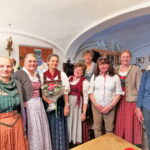 Trachtlerinnnen des Loisachgaus besuchen die Kunst- & Fahnenstickerei Jaeschke und Zwislsperger (Firmenchefin Carmen Zwislsperger 4. von rechts)
