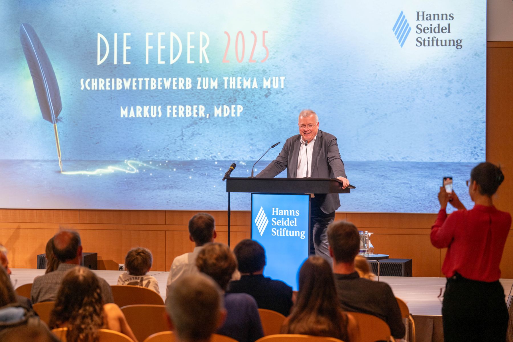 Der Vorsitzende der Hanns-Seidel-Stiftung Markus Ferber, MdEP, freut sich über mehr als 700 Einsendungen. Bild: Thomas Plettenberg/HSS