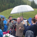 Rosenheims Landrat Otto Lederer fasste in seinem Grußwort seine Eindrücke in drei Teilen zusammen. Erstens – so der Landrat – gilt es in Europa den Wolf-Schutz-Status zu senken, zweitens gilt es, für den Bergwald und dessen Baumbestand den Rotwildbestand anzupassen und drittens muss für den Brenner-Nordzulauf das maximal Mögliche unter den Boden gebaut werden. Josef Glatz und Hans Stöckl, die als Vorsitzender und Geschäftsführer des Almwirtschaftlichen Vereins die Leitung der Begehung hatten, baten mit Blick auf die unterschiedlichen Interessen beziehungsweise großen Herausforderungen im Gespräch zu bleiben. Mehrfach wurden „Runde Tische“ und gemeinsame Termine angeregt und zugesagt. Ehrenlandesbäuerin Annemarie Biechl sagte auf die Frage, wie real sie die in Aussicht gestellten Lösungsbemühungen sehe, diplomatisch und aus eigener Erfahrung: „Sich gemeinsam auf den Weg zu machen ist richtig und wichtig ist es, miteinander zu reden. Letztlich aber zählt, was an echten Lösungen herauskommt“. Ein großes „Vergelt´s Gott galt abschließend im Zelt den vielen Ehrenamtlichen, die den Almbegehungstag vorbereiteten, für die Bewirtung und musikalische Gestaltung sorgten und sich für geregelte Verhältnisse auf Straße, Parkplätzen und Wegen bemühten“.