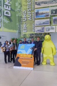 HDBG Jahrespressekonferenz 2026 (v.l.n.r.): Thomas Graf (Gitarre), Hartwig Löfflmann (Tuba), Roland Pongratz (Harmonika), Marc Spohr M.A. (Projektleitung Bayernausstellung), Dr. Richard Loibl (Direktor des Hauses der Bayerischen Geschichte), Dr. Peter Wolf (Projektleitung Bayerische Landesausstellung) und Dr. Olaf Heinrich, Bezirkstagspräsident und Erster Bürgermeister der Stadt Freyung. In Freyung findet ab 25. April die Bayerische Landesausstellung „Musik in Bayern“ statt. © Haus der Bayerischen Geschichte | Foto www.altrofoto.de