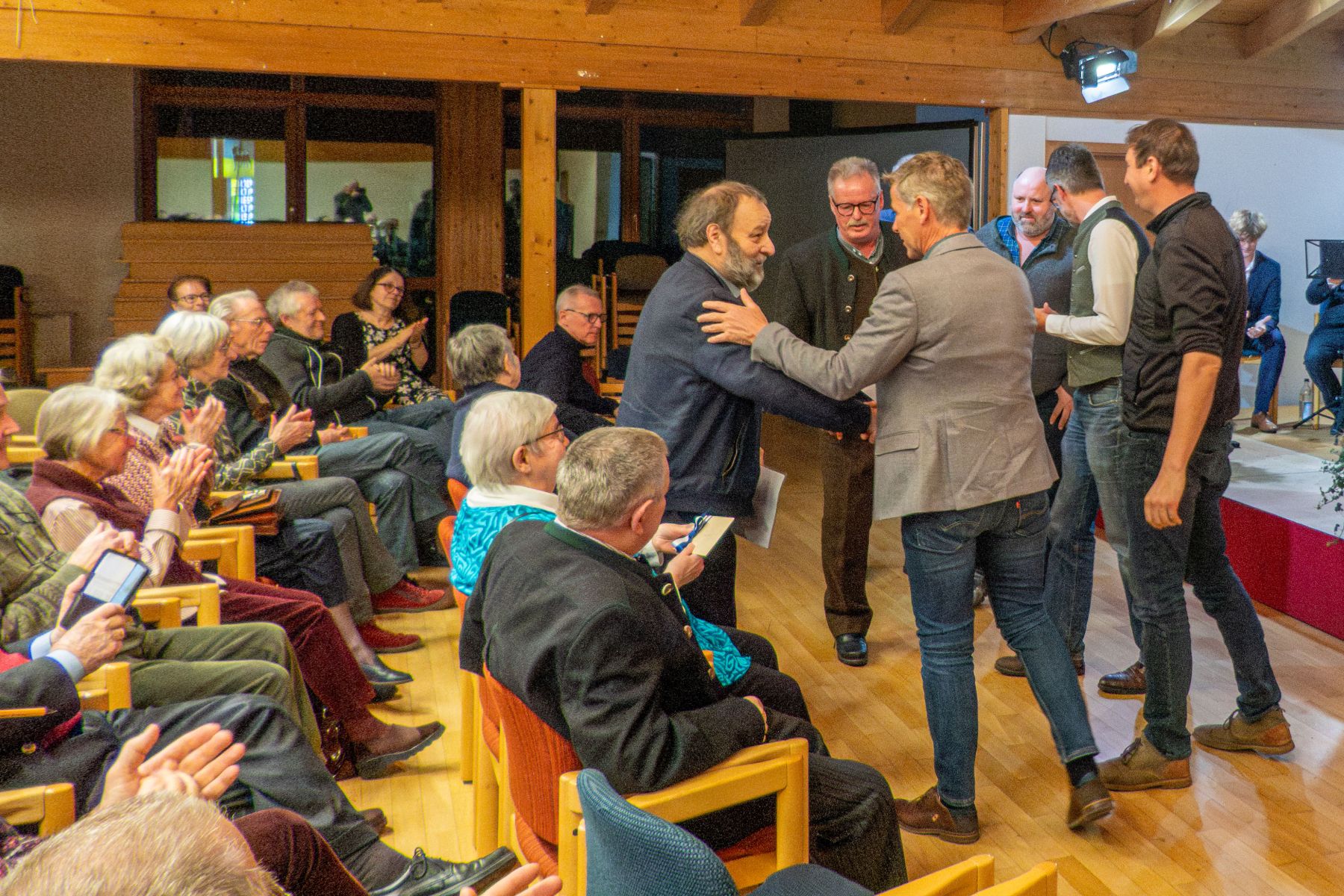 Auch unter den Bürgermeistern der Achentalgemeinden im Heimat- und Geschichtsverein Achental ist deren scheidender Vorsitzender und Ehrenvorsitzender Dr. Hans-Jürgen Grabmüller (links) hoch angesehen. Gratulationen und gute Wünsche gab es von allen Seiten.