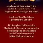 Die Öffnungszeiten mit Verkauf von handgefertigten Artikeln ausschließlich für soziale Zwecke sind am Samstag von 14 Uhr bis 20 Uhr und am Sonntag von 11 Uhr bis 18 Uhr.