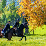 Die Szenerie erinnerte an ein Gemälde aus dem 19. Jahrhundert, in dem die leuchtenden Farben der herbstlichen Bäume und der strahlend blaue Himmel die perfekte Kulisse für dieses historische Spektakel boten.
