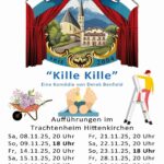 Jedes Jahr im Spätherbst führen die Theaterer des Trachtenvereins „Almarausch“ Hittenkirchen ein lustiges Stück in ihrem Trachtenheim auf. Derzeit wird bereits fleißig für die diesjährige Aufführung geprobt: Auf dem Programm steht die schwarzhumorige Komödie in drei Akten „Kille Kille“ des britischen Autors Derek Benfield.