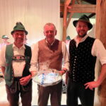 Er schaffte es zum wiederholten Male, dass die Bühne mit Spitzen-Musikanten und -Sängern, und der Saal mit einem großartigen Puplikum gefüllt war. Heuer mit dabei war die Saitenstrassen-Musi. Sechs junge Musikanten aus Nußdorf und Miesbach, die zwischendurch auch mit einem Gitarren-Duo glänzten. Gerade im Oktober wurden sie beim Internationalen Alpenländischen Volksmusikwettbewerb mit dem „Herma-Haselsteiner-Preis“ ausgezeichnet. Das ist die höchstmöglichste Auszeichnung. Genau das gleiche Prädikat erhielt vor zwei Jahren der Oimbliah-Dreigsang. Drei fesche Freundinnen, die im Gesang eine große Leidenschaft miteinander teilen. Nicht umsonst nennte Moderator Christoph Prankl die drei die würdigen Nachfolger der bekannten Fischbachauer Sängerinnen. Ebenfalls mit von der Partie waren die Adlgasser Sänger aus Inzell. Vier gestandene Mannsbilder, die mit ihren Liedern zur stimmungsvollen Atmosphäre im Moarhof beigetragen haben. Eigens für diesen Abend hat sich die Baschtler-Ziachmusi zusammengetan. Eine neu gegründete Formation, die mit Maxi Binder und Quirin Kaiser zwei ortsansässige Spitzen-Zaichspieler vereinte. Zwischendurch wurde das Programm mit viel Witz, Charm und so manch interessanter Anekdote von Elisabeth Kronsteiner aufgelockert. Christoph Prankl übernahm heuer zum letzten Mal die Organisation dieser beliebten Veranstaltung und wurde im Anschluss an den Abend von den Trachtenvereins-Vorsitzenden Martin Schober und Max Maurer mit einem Präsentkorb und anerkennenden Worten gewürdigt. Ein Nachfolger für ihn war jedoch gleich gefunden. Niemand geringerer als Quirin Kaiser wird in seine Fußstapfen treten und hoffentlich viele Jahre dafür sorgen, dass der Hoagart in Roßholzen ein Puplikumsmagnet bleiben wird.