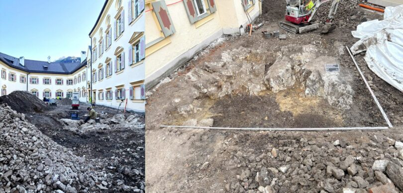 Abb. 1: Schloss Hohenaschau während der Grabungsarbeiten, Foto: Nikolas Lorenz, Grabungsfirma ReVe.