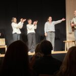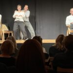 In verschiedenen Formaten jonglierte die Truppe jede Art von Comedy und Witz durch den Abend und ließ das Publikum einzählen: „5 – 4 – 3 – 2 – 1, Improfeten mit -f-!“. Besser kann man einen ganzen Saal nicht aufheizen. Mit Ideenreichtum, Spontaneität, Flexibilität und Sprachgewandtheit unterhielten sie die Menschen lustvoll und kreativ. Begonnen wurde mit dem ABC-Format, bei dem jeder Halbsatz nach der Buchstabenfolge des Alphabets beginnen musste. Den Inhalt dieser Sätze legte wiederum das Publikum fest. Schließlich ging es um die Oma, die man aus dem Keller holen wollte. Wie aus der Pistole geschossen, kamen die Ideen. Zum Brüllen komisch. Dann das Vorstellungsgespräch für den Job des Kläranlagentauchers. Keine der Bewerberinnen mit Mehrfachrollen wusste, wofür sie sich bewarb. Durch eine geschickte Fragestellung – „Haben Sie Kinder? Kennen Sie sich mit Scheiße aus?“ Oder „Waren Sie schon mal in Ägypten?“ – dirigierte der Personalchef Thomas Stegmann die Damen in die richtige Richtung.