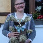 Aus den insgesamt 1.196 abgegeben Stimmen konnten die Jugendleiter am Ostersonntag schließlich die drei Sieger küren: die meisten Stimmen bekam dabei das „Osterhasen-Trachtlerpaar“ der Geschwister Bernadette und Benedikt Schweyer, dicht gefolgt von Martina Sonner und Vreni Spensberger auf den Plätzen 2 und 3. Zur Siegerehrung und Überreichung der Preise besuchten die Jugendleiter, selbstverständlich unter Einhaltung der coronabedingten Hygienevorschriften, die stolzen Gewinner Zuhause. Aber auch alle anderen fleißigen Bastlerinnen und Bastler bekamen für ihren Heu-Osterhasen eine kleine Aufmerksamkeit.