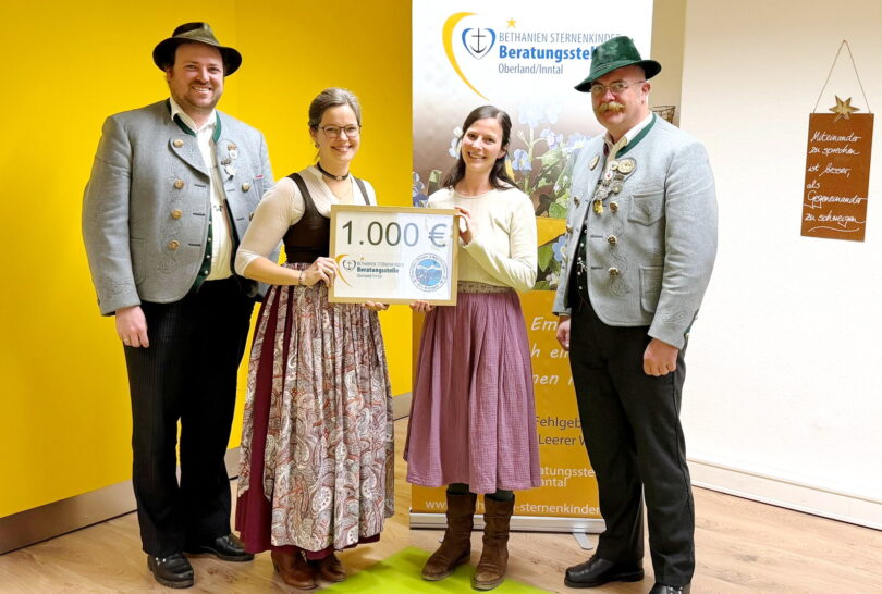 Der Inngau rundete die am Ende der Veranstaltung gesammelten Spendengelder auf. So konnte vergangene Woche der Stiftung „Bethanien Sternenkinder Oberland/Inntal“ ein Spendenscheck in Höhe von 1.000 € übergeben werden. Dieser wurde mit großer Freude seitens der Stiftung empfangen und dient für anstehende Projekte, welche Familien in ihren schwersten Stunden unterstützend zur Seite stehen. Den Verantwortlichen des ausrichtenden Trachtenvereins „Wendlstoana“ Bruckmühl sowie dem Mesner- und Altardienst gilt ein großer Dank für die Unterstützung zur Durchführung des Adventssingens.