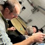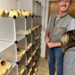 “Schuhe aus” hieß es für die Teilnehmer der Brauchtumswarteversammlung am Donnerstag, 14. November in der Hofkäserei Stroblberg (Baiern): für die Besichtigung der Hofkäserei bekamen alle (nicht sonderlich) bequeme Holzschuhe vom Hausherrn, um keinen Straßendreck in die Räumlichkeiten zu tragen.