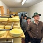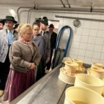 Die Bilder zeigen Impressionen von der Hofkäsereiführung, der Versammlung sowie die neu gewählten Gaubrauchtumswarte Helmut Hofstetter (re.), Renate Buys (Mitte) mit 1. Gaukassier Hans Gschwendtner (links).